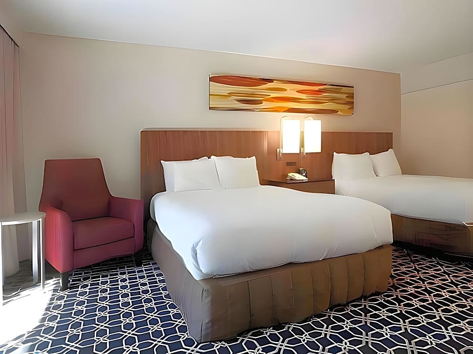 Any corresponding photo may not reflect the specific accessible room type or room feature. This mobility accessible standard room features two queen-sized beds, and a roll-in shower. These spacious non-smoking guest rooms are 450 square feet and feature contemporary modernist design elements. Catch up on work at the desk, relax on the couch while watching an on-demand movie or step out onto your private patio and enjoy the Palm Springs lifestyle.